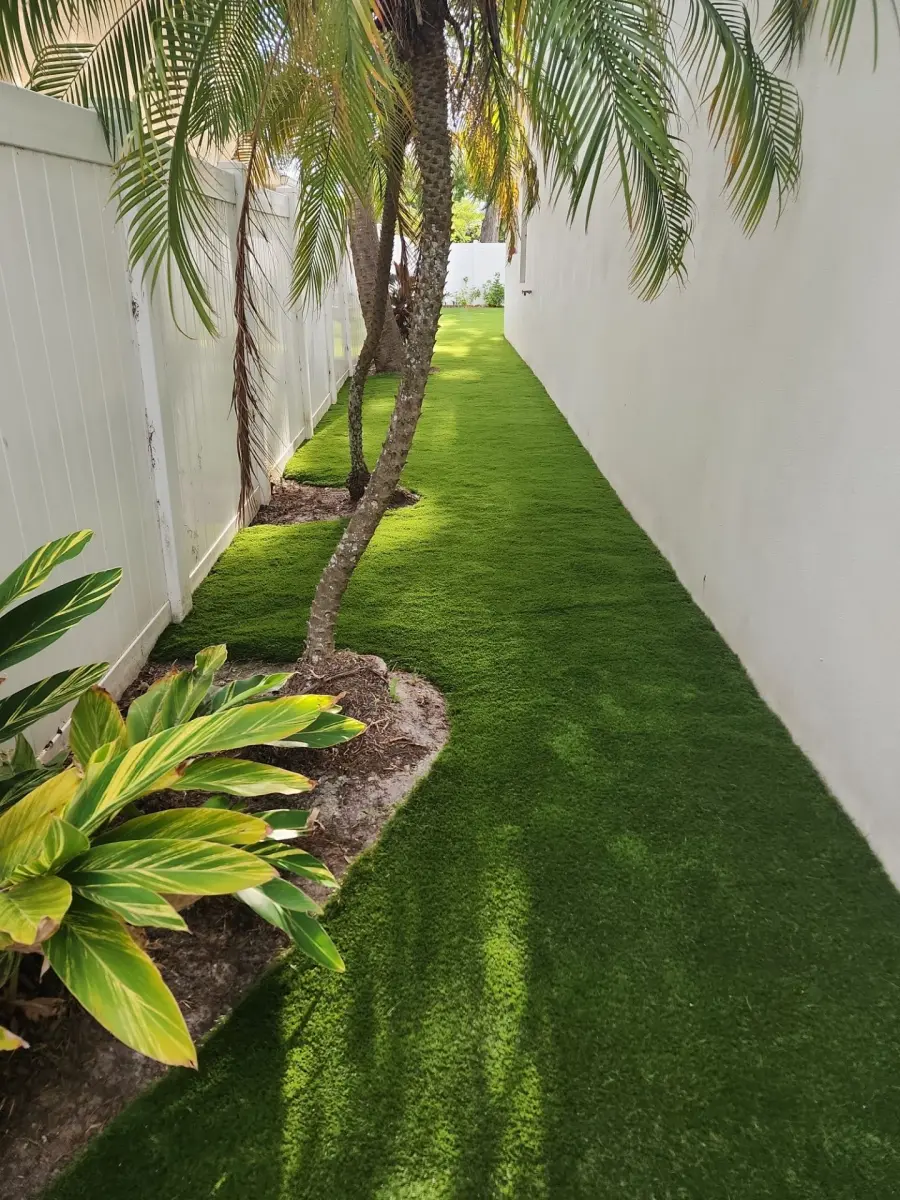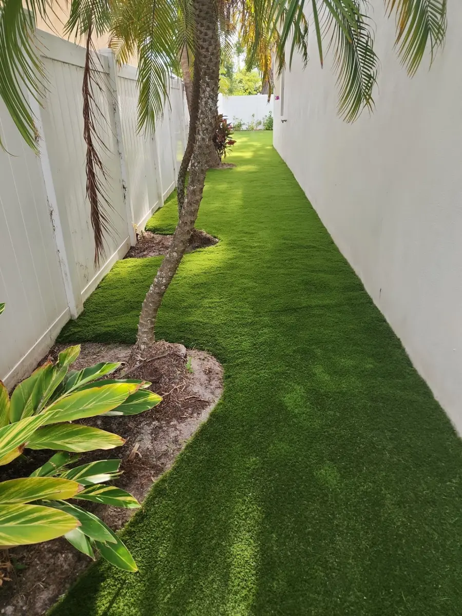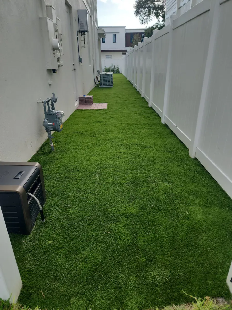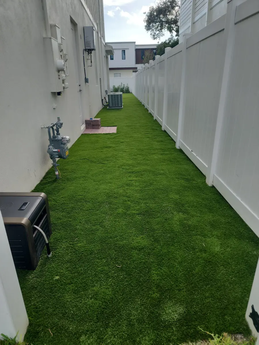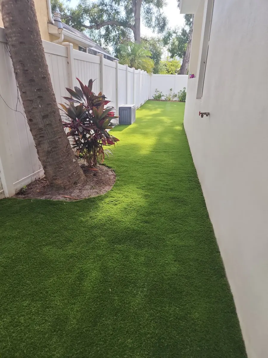 The flexibility of synthetic turf makes it an excellent choice for a wide range of applications. Our recent Tampa projects, shown in the photos above, include side yards lined with palm trees, spacious backyards ready for family gatherings, and utility areas around air conditioners and water systems. No matter the space, artificial turf installation delivers a clean, vibrant look that requires little maintenance.